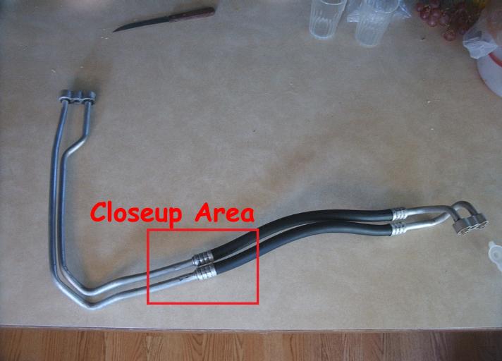 The replacement lines I'm looking at online may not have two sections of hose as I mentioned earlier. It appears that one of the lines has some sort of sleeve on it. Probably to prevent rubbing. Lousy picture. So my earlier statement wasn't exactly correct. Lines may be the same, have the same bends as mine. Wish I could eyeball one.