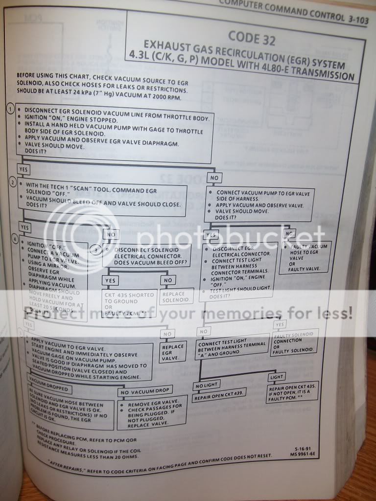 OKie dokie. Most of the 91's came with the throttlebody with injectors. Since you have the cpi system and electric egr you wont have a plastic line. Id remove it and clean it before doing anything. I bet its got a chunk of carbon holding it open. When i bought my dads blazer for cheap it was doing exactly what yours is doing with a code 32. I had to clean it 4 times as there was a bunch of carbon in the system. They make a special screen gasket that blocks chunks from getting in it.