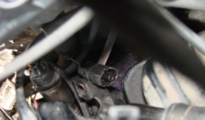 I have taken a couple of pics to clarify. The first shows the connector in detail. The wire is blue and short. The second pic shows more of the location. A bit blurry though.