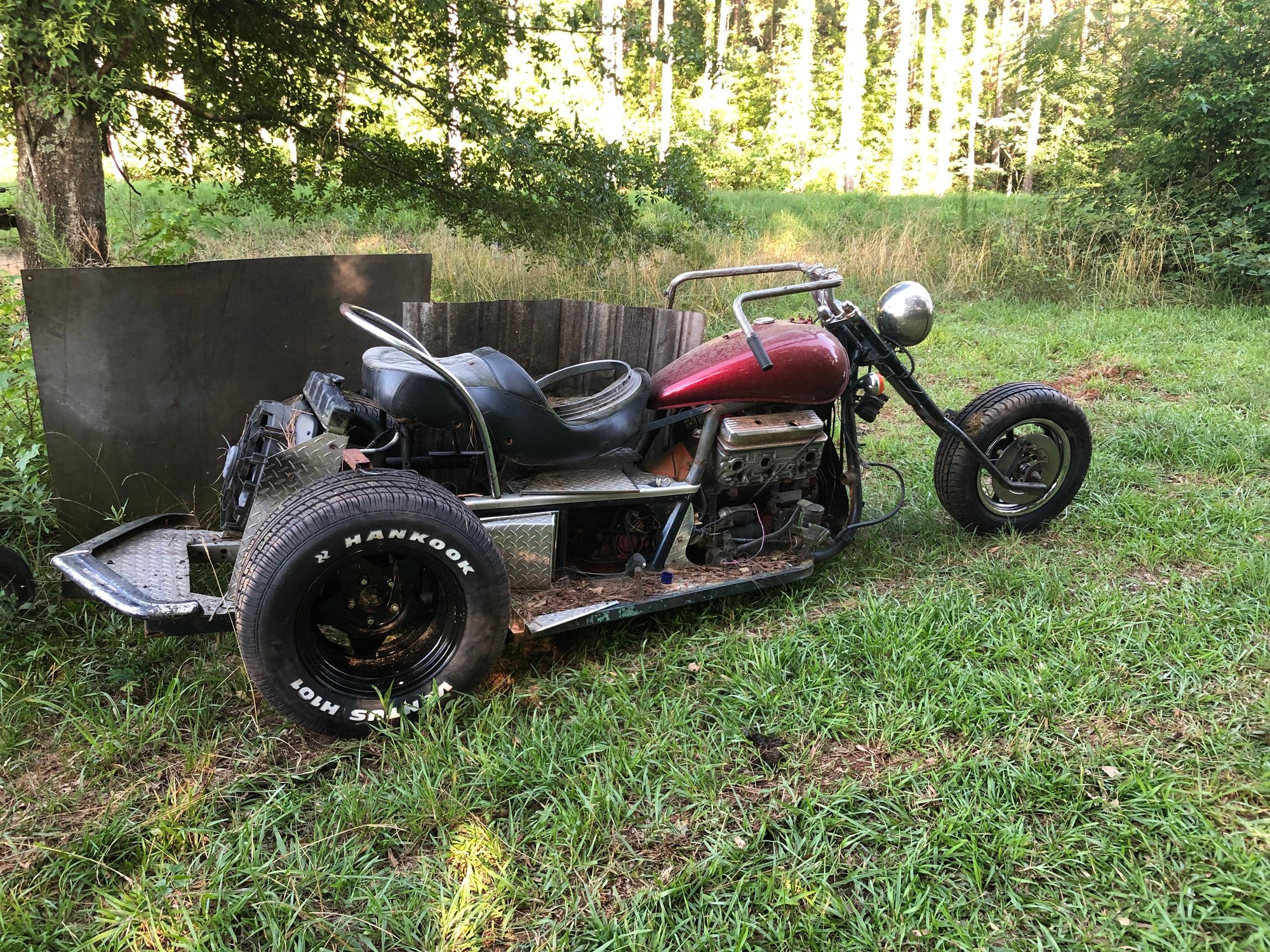 When your front tire wears out get you the cheapest radial tire you can find, they work excellent. I did something similar. I took the center section out of a 9 inch ford and grafted half shafts to it, kinda like a vette uses. That way it keeps the center fixed for the hook up to the trans but allows the tires to be independently sprung.