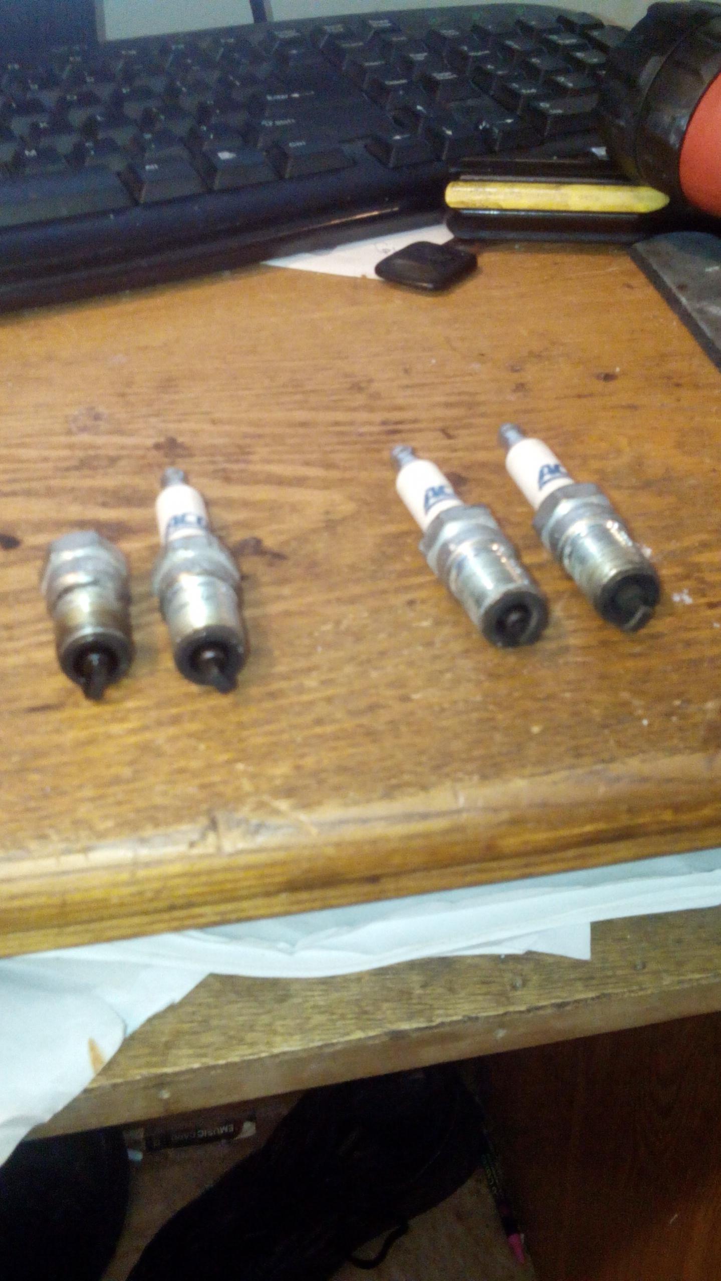 The two plugs on the left had extensive fuel on them. The others were dry.