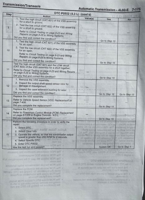 One thing I did notice though is the VSS resistance spec in step 7 is no where close to the new one that i installed. As a matter of habit I regularly check replacement parts against what I remove. My original VSS was open( infinity) and the new replacement was 5ohms exactly. Mmmmm?
