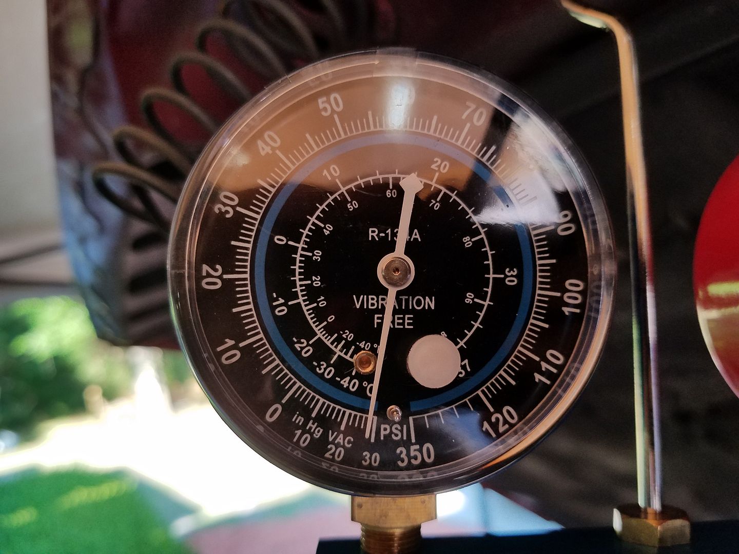 I shot some r134 in her, getting the pressures where the need to be (was dark and the outside temp had dropped, so I'm going to check again tomorrow afternoon when it's still 100 out and see how it's looking), and I'll be darned if she's not cold again! Ambient temp about 87-88 degrees at the time (yes that's "cooling off" here in Florida this time of the year lol). When I got in the truck to leave work today, the same gauge read 120... NOT TOMORROW GENTLEMEN!