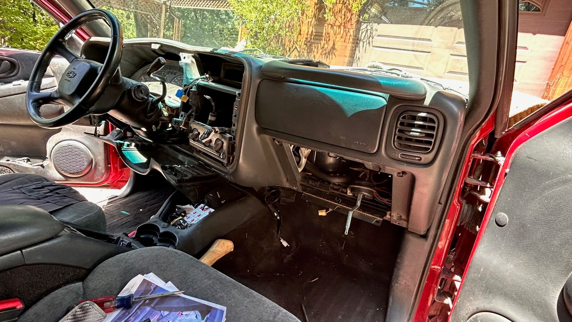 I got my dash pretty well torn apart w/o actually dropping it. Working on the actuators (again), the fan motor problems and trying to squeeze in a new radio.