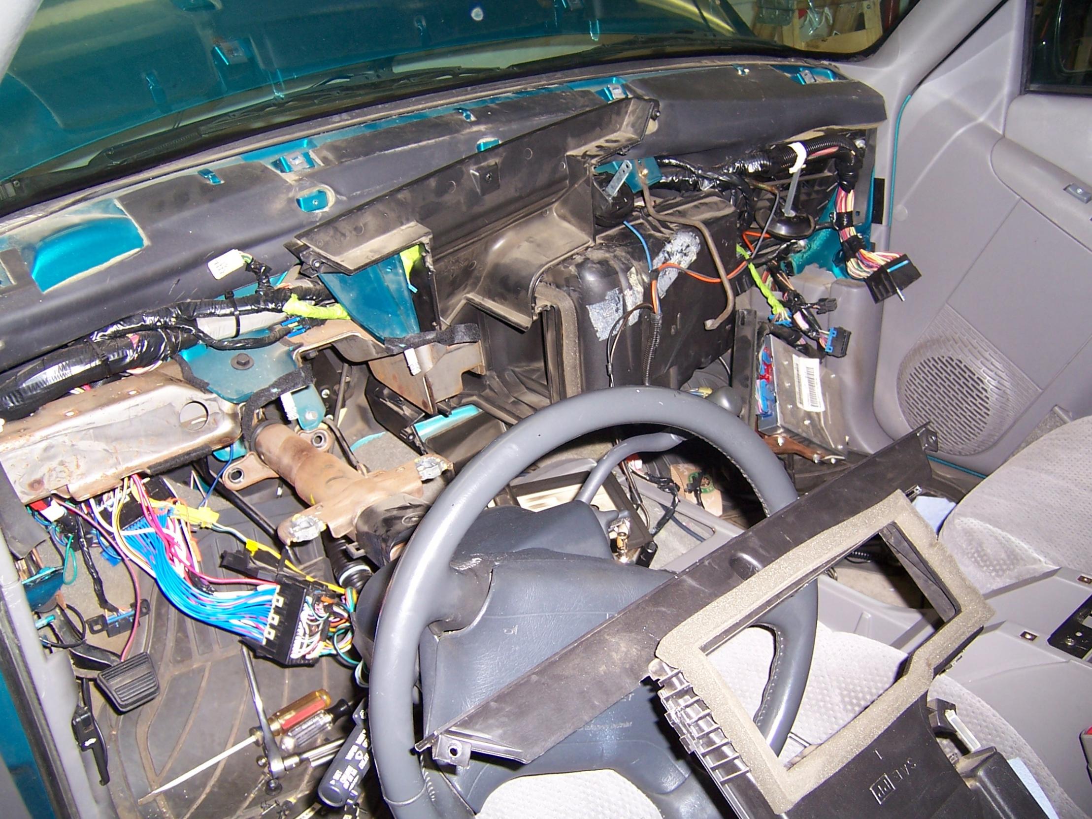 Ok this really sucks! I got the dash tipped then realized that it would be easier to just take the darn thing out......not all that bad to do. The thing that sucked was that when I took the lower modulater valve out then went to put it back together I broke the lower air door!! The one with the spring mounted on it, and then found out that nobody in the state has one!! I guess I'm off to the junk yard in the morning.