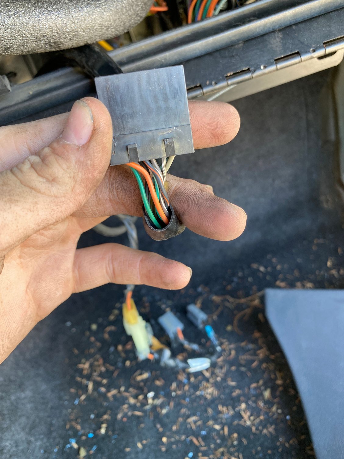 I'm not certain, but it kind of looks like the cable that goes from the factory CD player to a remote tape player in the console. Where was it located in the dash? I think that cable was often there, even if the vehicle wasn't equipped with the remote tape player.