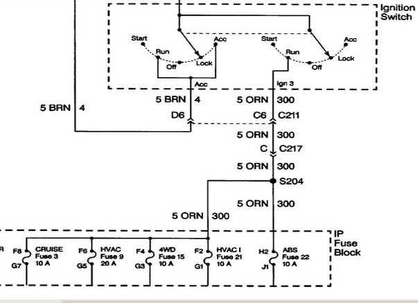 -this is from my 99 diagrams. should be close but I suspect IP fuse or or block connection, not ign sw.