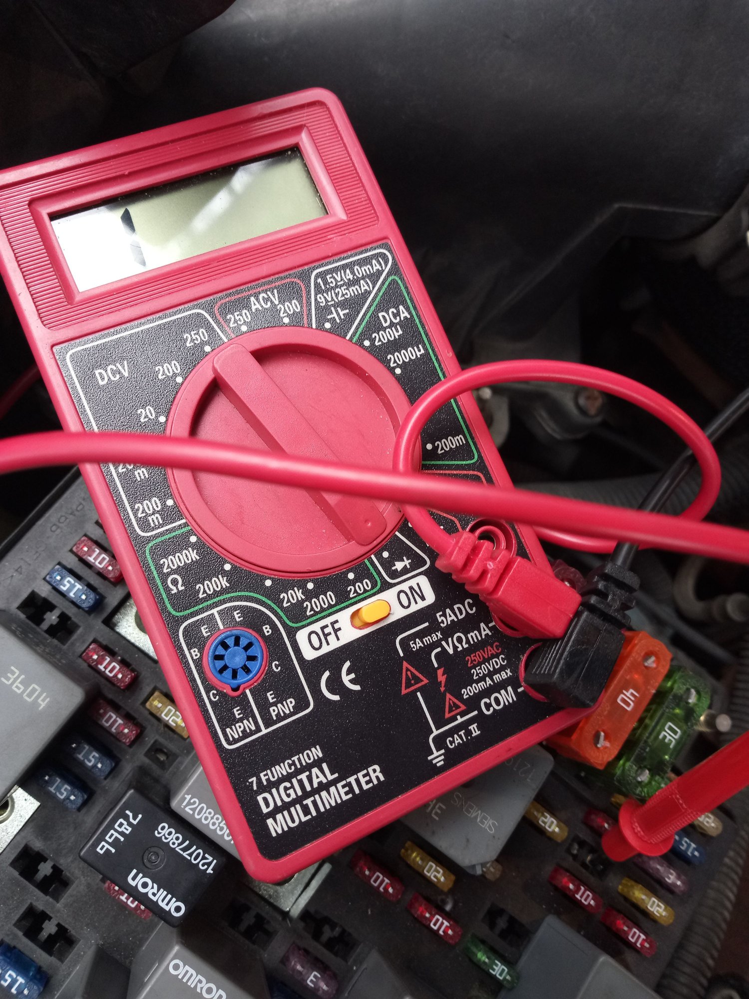 I cant tell if your in the hot side or the downstream fuse pin so I am verifying the pin that had no power and I would like to have you change the meter to 200 ohms instead of the diode/continuity setting as shown.