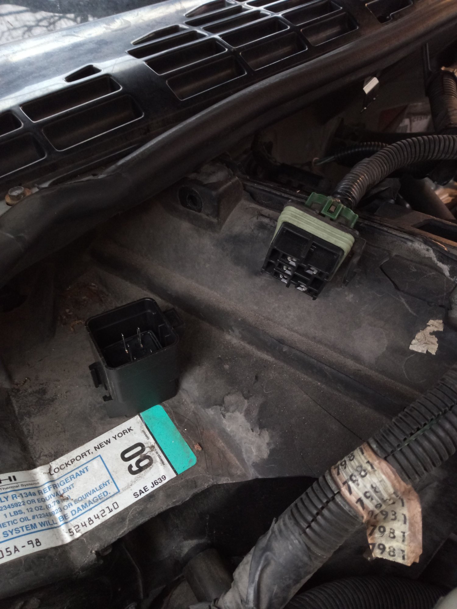With the blower speed set on anything except #4 probe both orange wires behind the relay socket and see if you get 12V on either wire.