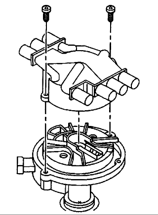 5. Remove the two screws that hold the distributor cap to the housing.