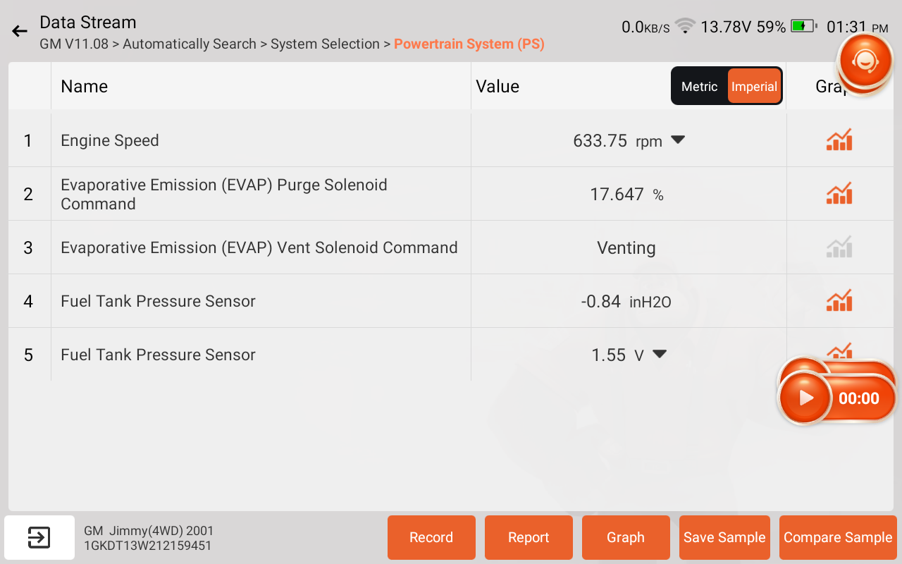 I then ran the same test and took the gas cap off and No change in value as it did when I turned the vent valve back to venting.