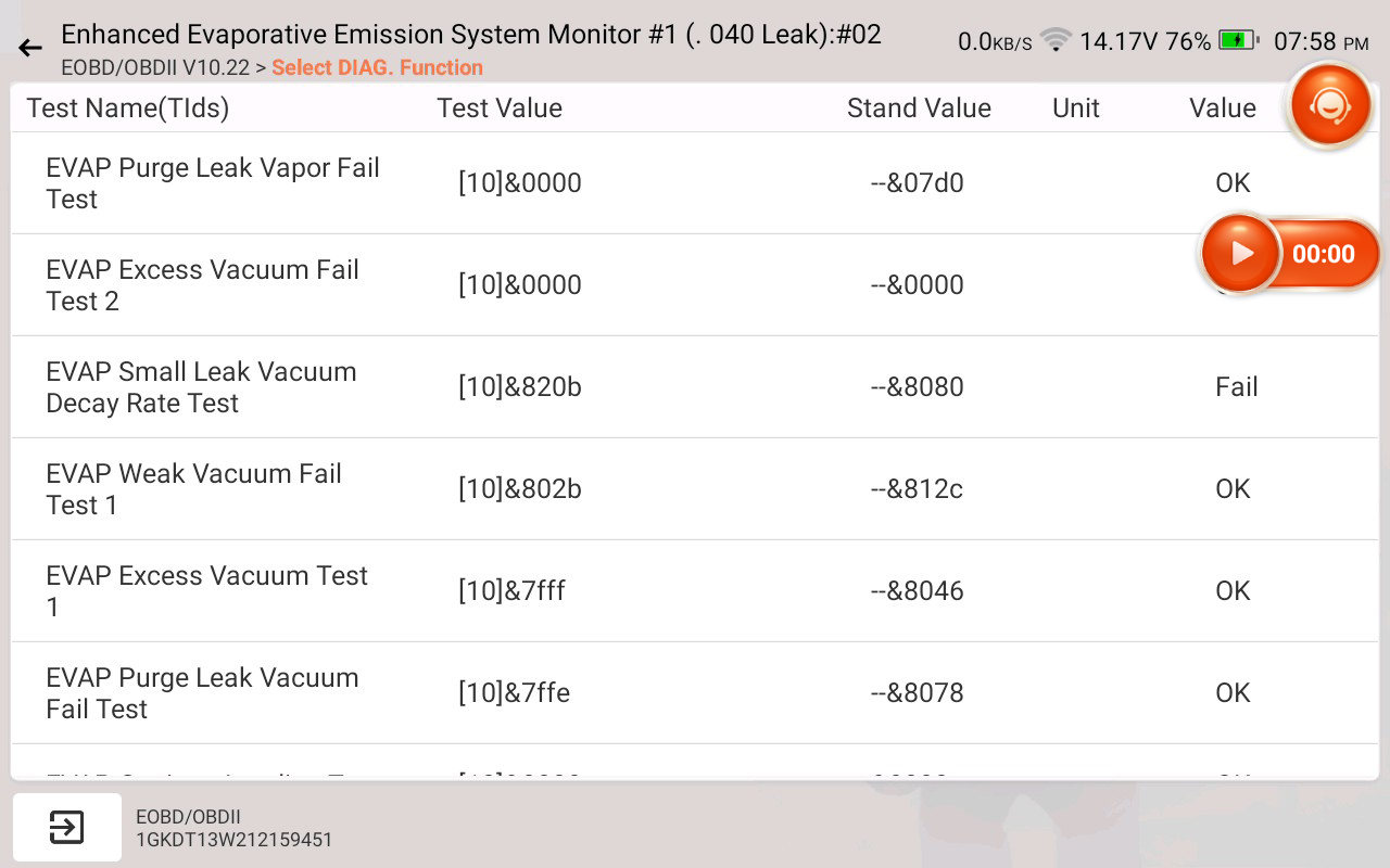Then I ran the service bay test and it failed the EVAP small leak vacuum decay rate test.