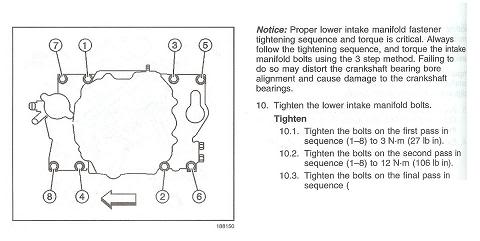 Thanks for the diagram Captain. I never did multiple passes on the tightening sequence. Always just went straight to ~160 in/lbs and in a completely different sequence (pretty much dead opposite, starting from drivers side)