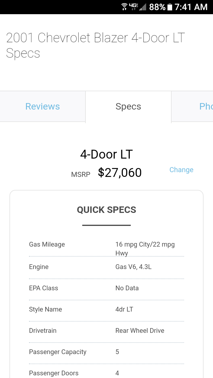 (Overdrive) there is a substantial and noticeable drop in RPMs. That can only be in the transmission not the differential. Regarding the mileage please see picture. It is the specs of a 2001 four-door two wheel drive.