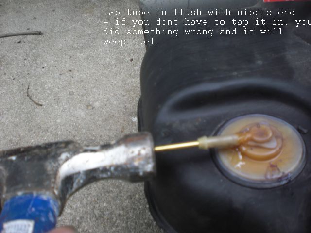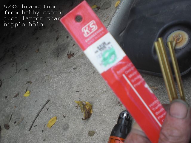 I marked the 5/32 tubing for the full length of the nipple passage, cut and deburred then tapped it in till it was even with the end.