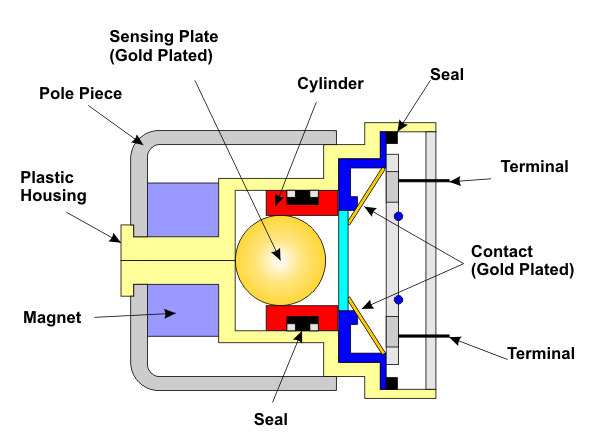 https://cimg2.ibsrv.net/gimg/blazerf...c5ca4d8ac5.png Figure 1. Structural components to an Inertia sensor. Source: Duffy, J.E. (2001). I-Car Professional Automotive Collision Repair. New York: Delmar, a division of Thomas Learning.During a collision with another moving vehicle, the sensing mass is forced forward into the gold-plated contacts as a result of change in the state of motion. Following movement of this metal ball into the contacts, this metal mass makes contact with electrical terminals at either side of the metal ball which alerts the central unit to a collision (i.e., the electrical contact completes the circuit). https://www.azosensors.com/article.aspx?ArticleID=40 I checked and sure enough, the darker ring inside the sensor body is a magnet. Going by the structure of the sensor, I would say that this confirms that if you get your own sensors off of a vehicle at a wrecking yard, do NOT get one from a vehicle in which the airbags have been deployed. I looks like once the ball has moved forward, the internal parts of the sensor could be damaged. This could be a good example for a physics lecture on Newton's Second Law; If the deceleration is great enough, the force of the magnet on the ball is not sufficient to keep the ball from continuing its forward motion and making electrical contact with the electrodes, completing the circuit and triggering the airbags. The magnitude of the deceleration is only one criteria for deployment according to this paper (http://www.theforensicexaminer.com/2...Deployment.pdf). The range of accelerations are about 5gs to 10 gs. |