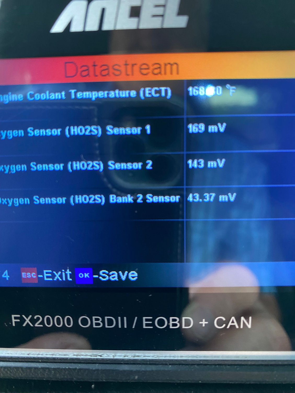 Finally received the ilink 400 with GM data. Guessing I had missed this during all the past scans but the IAT was stuck at 42 degrees but outside temp was in the 80s. Quick R2 of this sensor and test drive around town had my fingers crossed, good idle, good running but my street has a steep hill to climb, got the SES light at about 30 mph 😡🤬🤬. I grab some O2 data and noticed Bank 1 sensor was different from Bank 2 sensor voltage readings.