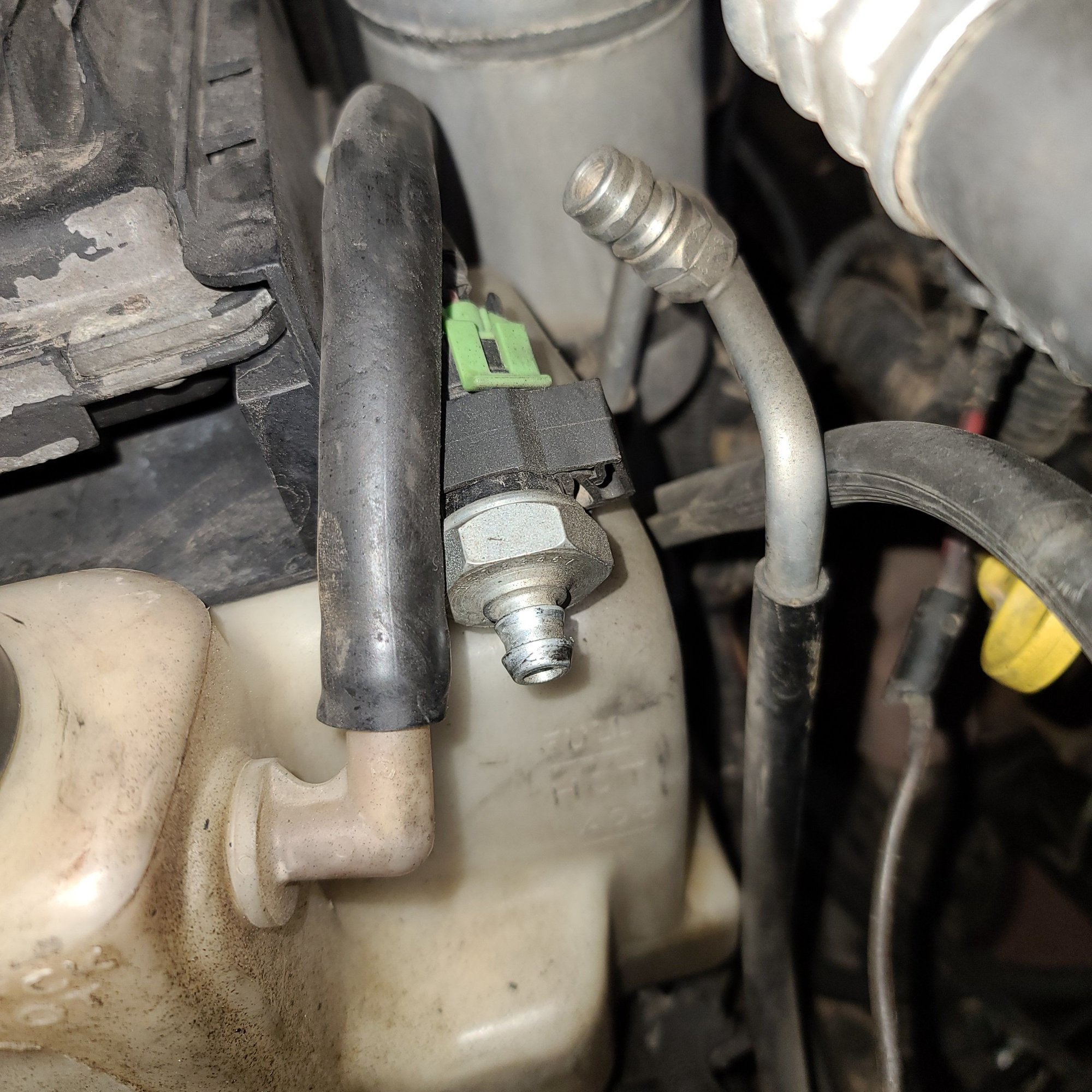 Pic #1: The sensor with green wasn't connected to anything. It sits on the coolant bottle
