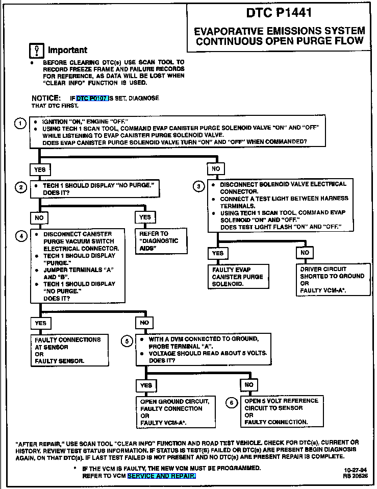 P1441 - EVAP System Continuous Open Purge Cycle Flow
