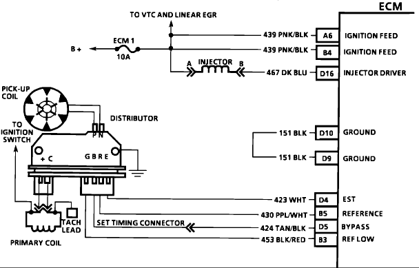 Your ICM may not be getting timing pulses from a distributor. You may try punching thin needles through the wires at PN contacts and measure the AC voltage. As far, as there are timing pulses, it should be present. I'd expect a few volts amplitude. This could rule out the distributor.