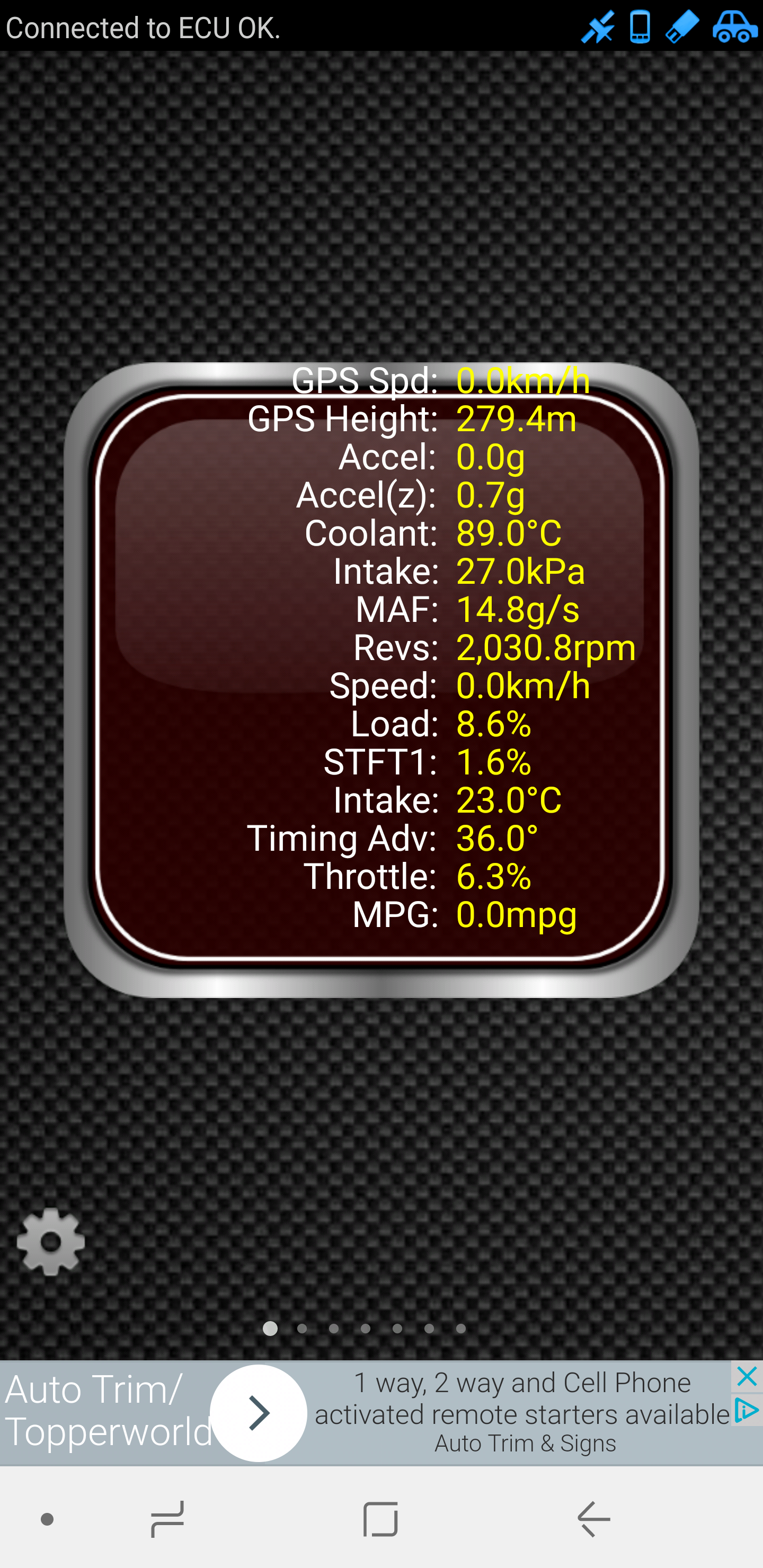 Here are some screenshots from Torque lit, not sure what it all means though. One screenshot at idle, other at 2K revs