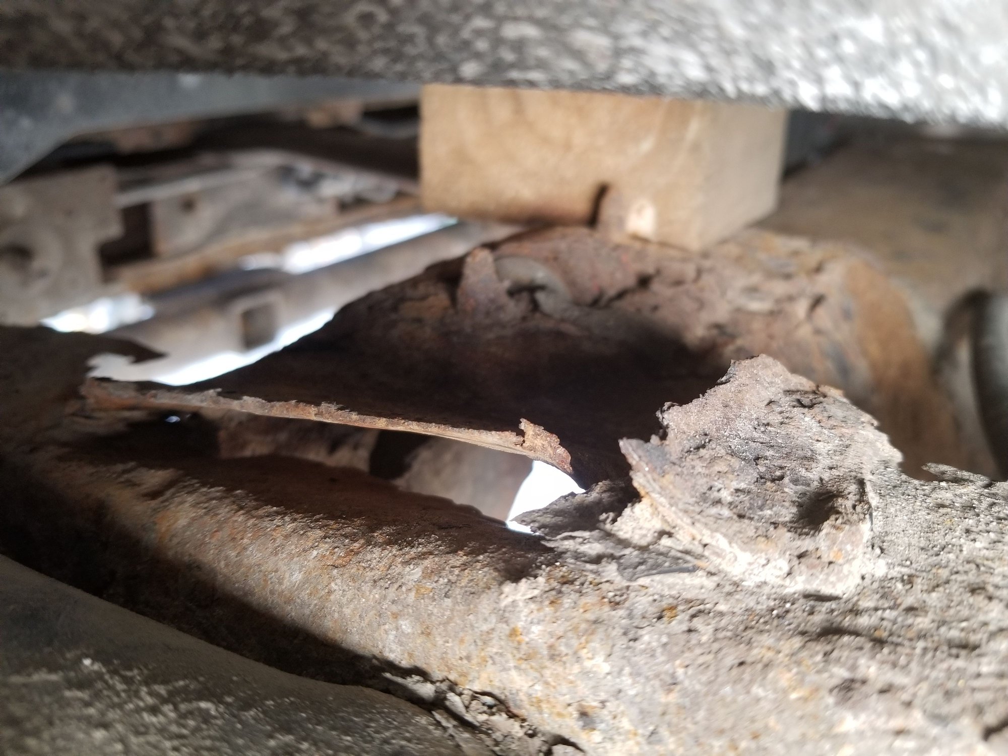 Rust has taken it's toll. Sorry to say but at this point trade it in and hope they don't drive it over bumps. See ones just like that on Craigslist all the time here in North Central Indiana. Nice clean Blazers with rusted out frames. Hope mine will last a few more years. The Avalanche I just went to South Carolina to buy last year I had "Krowned". This is the Canadian rustproofing that is reported to actually work. It is sticky oily stuff they spray everywhere inside through holes and underneath on body, frame, and lines. It creeps into crevices - but needs to be redone each year. Drips for a few days. I drove to Detroit area to have it done. Think I'll also do the Blazer next time. Can't hurt.