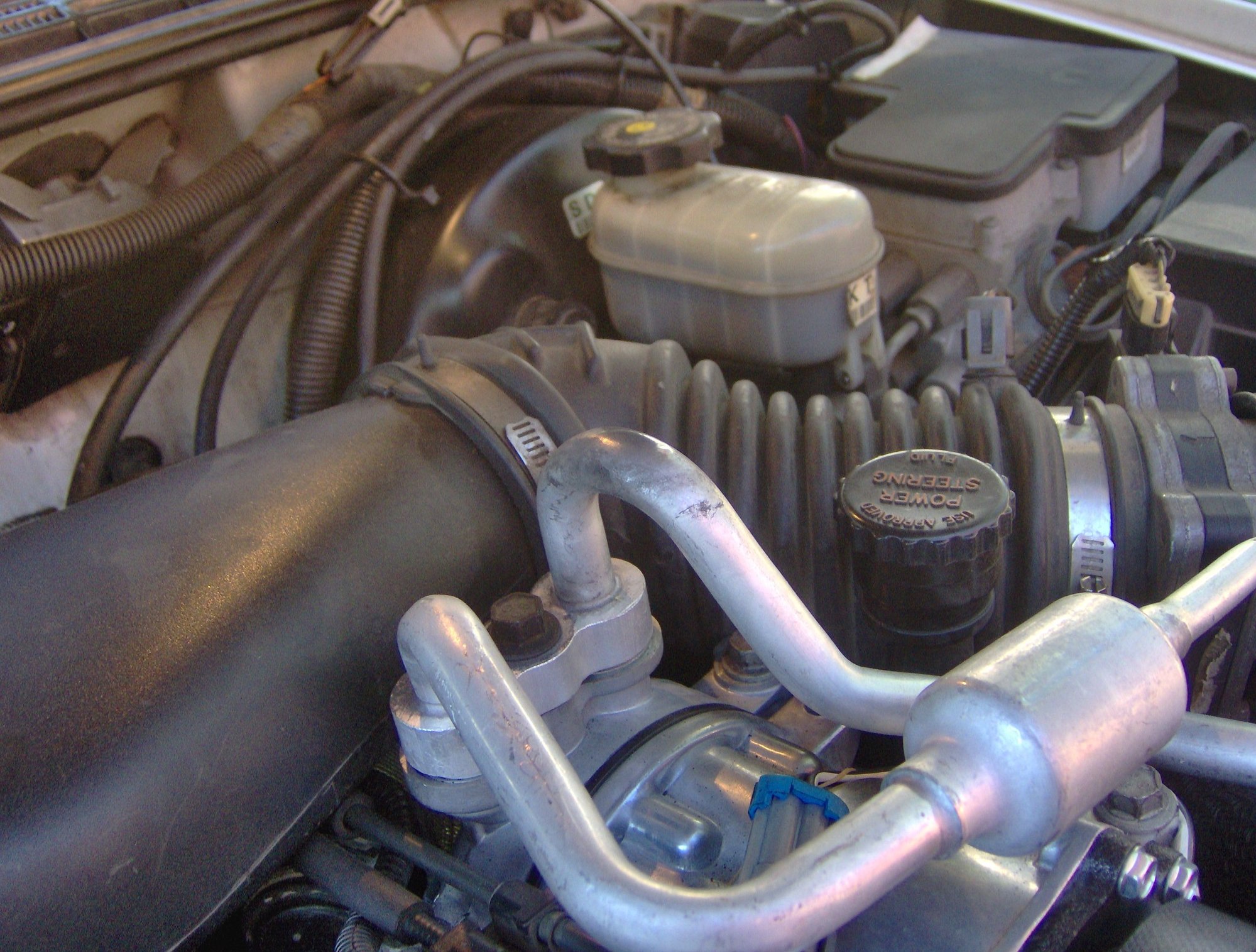 Regarding the serpentine belt; you will need to get a new slightly longer one. The one suggested in the instructions that came with the compressor was too long. I determined the appropriate length by the marks on the tensioner pulley. For new belts, the mark on the fixed part should line up with the wide mark, and for a used belt the mark should be between the wide mark and the narrow mark. The new recommended belt was at the outer mark with the used OE recommended belt being just inside the new belt band mark. I split the difference on the lengths and used a 960K6 (96.0 in inside length) belt which when installed had the fixed mark just a bit above the wide new belt mark. I suspect a 955K6 belt could also work. If you don't turn on the engine, your parts store might let you return the belt if it doesn't fit. (http://www.s10forum.com/forum/attach...etch-limit.jpg)