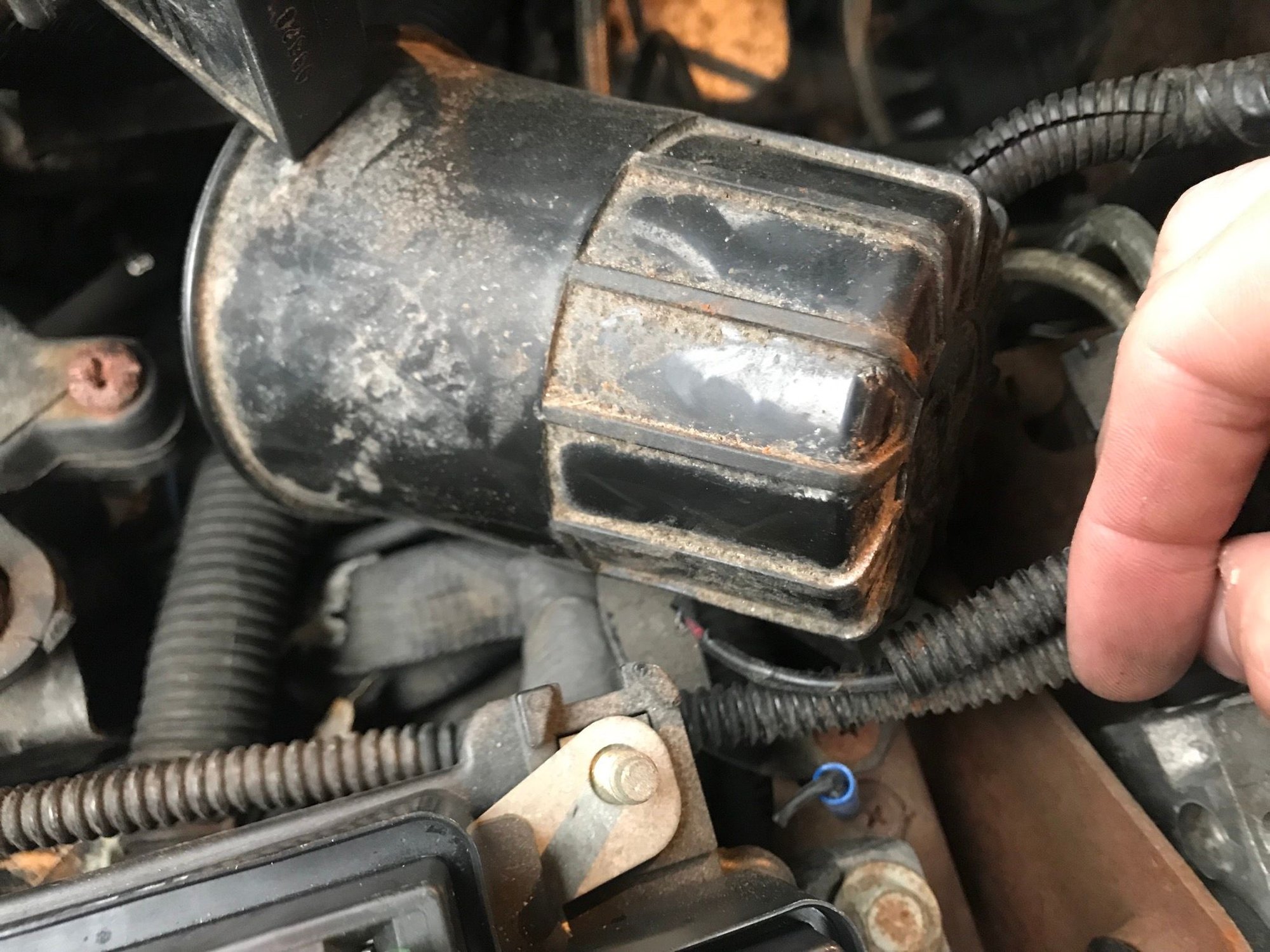 Based on the facts above, I believe the cause of the horn not working is a bad ground. I took the battery tray out and followed the electrical wire down. However it's hard to tell what is going on down there, the wire splits into a Y and I cant tell where the ground for this horn wire is. It is also difficult because the 4x4 vacuum actuator is right in the way. There are a few eylet/bolt grounds on the radiator support but I cant tell which one is for the horn - all of these look very rusted and don't want to touch any I don't have to.