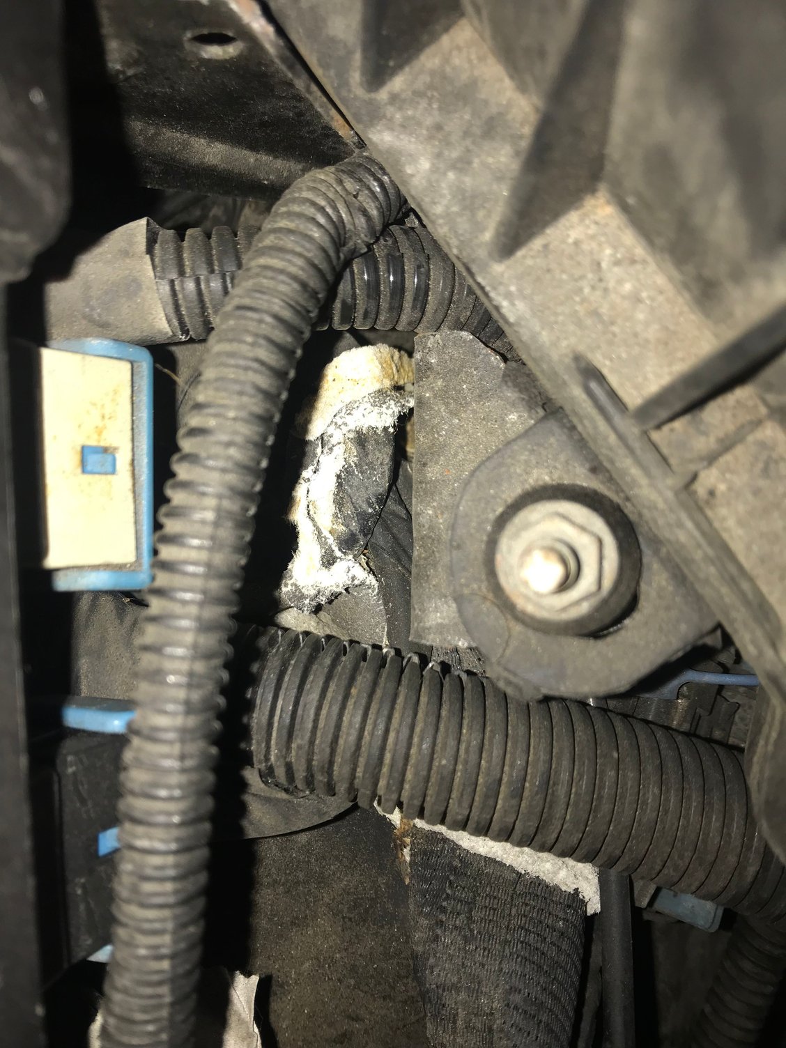 yes that powdery dust is usually electrical corrosion or acid. Any shorting due to corrosion might be at a spot like that. If that’s a wire wrap, peel it back and see what you’ve got. My original suggestion about a common connector is probably under the fuse box. Let’s not start pulling that up until these other things get straightened out.