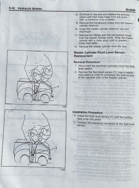 I get a brake warning light when bleeding the front brakes, every time. The scan tool says the differential pressure/fluid level switch is reading low, of course, there is plenty of fluid in the MC. If this switch is bad, can it be letting air into the system? I'm not even sure where this sensor is on the Bravada, I'm guessing it is the electrical connector in the proportioning valve? Thanks |