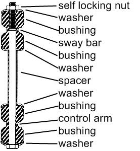 Ok, while looking underneath, I noticed that the bolt on the end of the Stabilizer Bar has some spaces in-between the rubber bushings and there is no NUT on the top of the bolt. This does not seem right and the Haynes manual does show a nut….is the manual right? Why hasn’t the bolt come out?