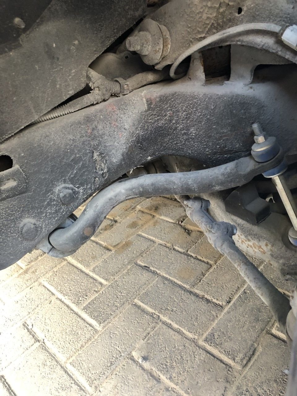 I could be wrong but that sway bar looks installed wrong to me. Doesn't it normally sit below the tabs on the control arms? I think it's either upside down, or just installed wrong.