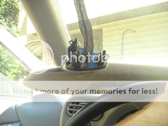 do you ever plan to have it back off??? if not get some of that super silicone. and stick it back up there. or tear your headliner back and weld a nut up there so your screws will thread in that hole.