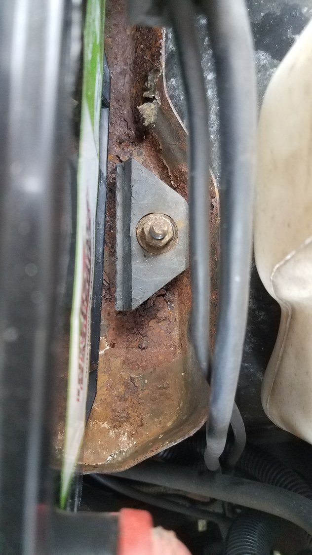 I'll have to look for that towards the bumper on the battery tray. Never knew it existed quite possible it's rusted away after 20 years.