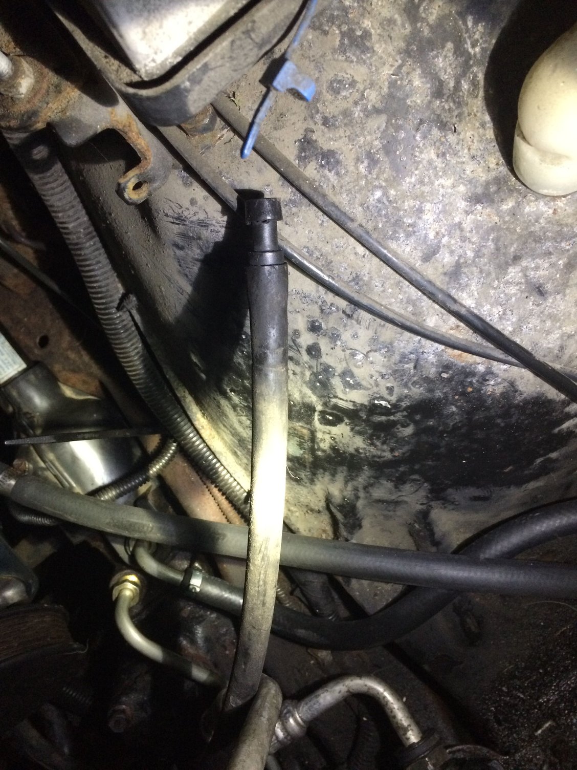 Huh. That would make sense actually. Hadn't thought of it being a vent tube. Any reason why it's capped off though? And is there a particular place it should be sitting or a clip it should be hooked into to hold it up?