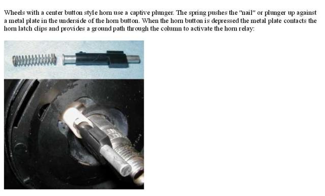 I'm working on fixing the horn on a 97 Blazer. I took the airbag out, and there's a little white rod that should be in one of the holes in the steering wheel. I believe that rod is what switches on the horn. However, for some reason, the previous owner took it out, and I need a new one. In order to get a new one, I need to know what it's called. Help!