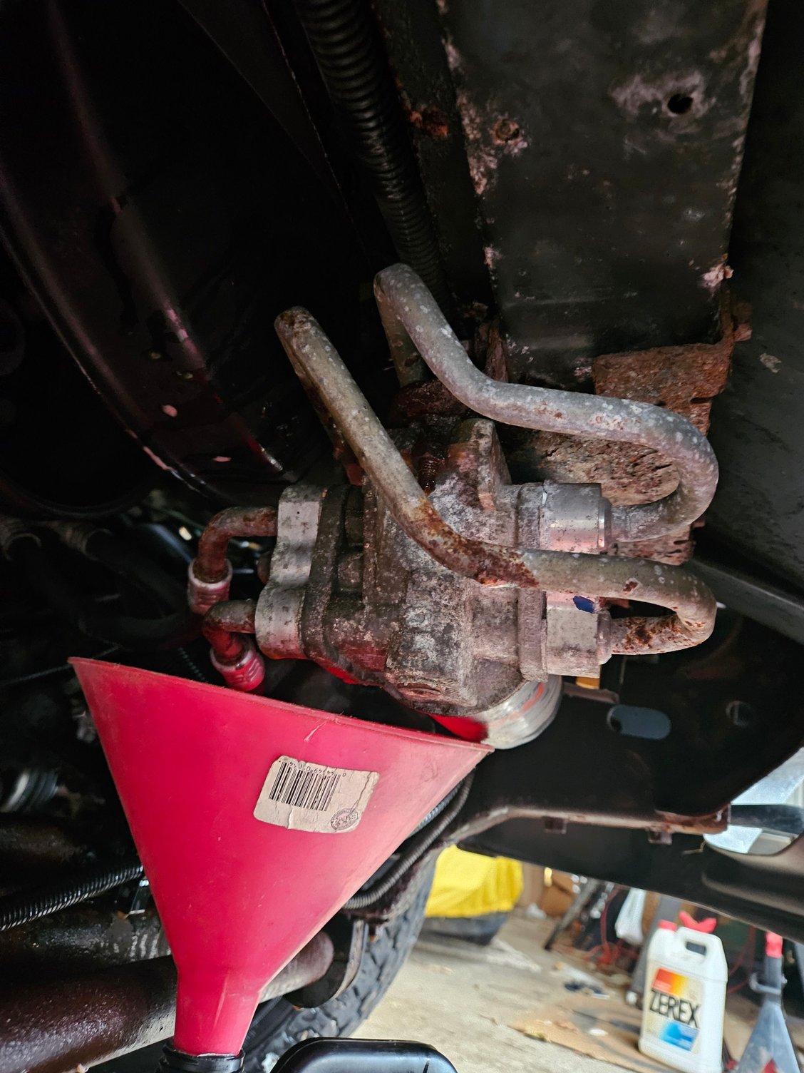 Now would be a good opportunity to do a thorough flush of the cooling system. The ideal way requires removing a block drain plugs, one on each side, to get as much coolant out as possible. I could only get to the one on the driver's side.