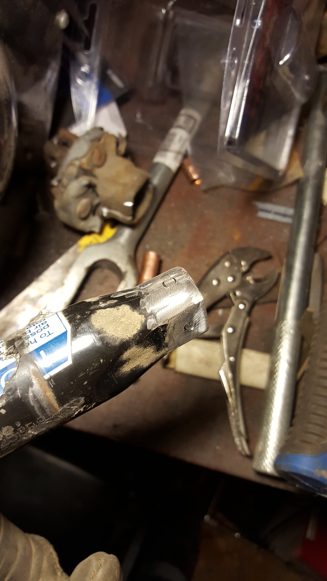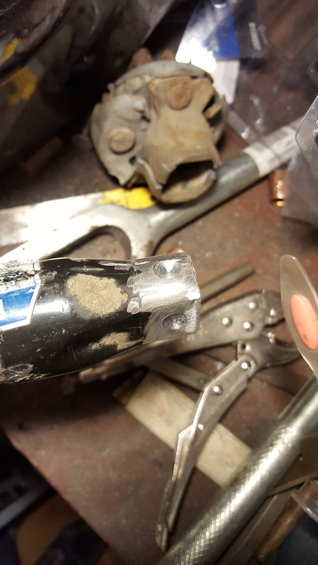 Next you need to remove the old rag joint. I cut one side, and couldn't get it off. So I chose to cut both sides and then it came off very easy.