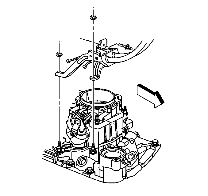 Step 10. Remove the stud and nuts retaining the accelerator control cable bracket and position bracket aside.