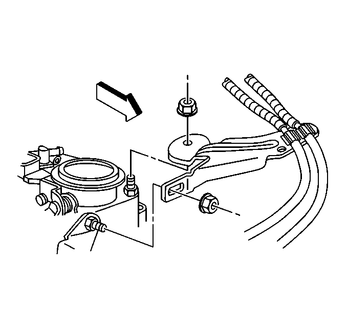 Step 9. Remove the nuts retaining the accelerator cable routing bracket and position bracket aside.