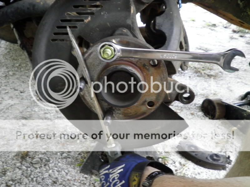 10) Now using the screwdriver and 19mm wrench...tighten down the nut until the wheel stud is FULLY SEATED on the wheel hub.
