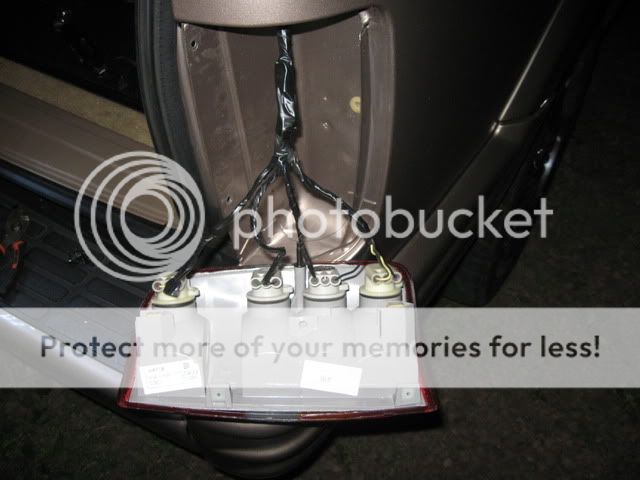 I have the turns wired up, today is the day for the brake lights. :) And I found you can remove the socket core for the bulb sockets, I used an awl and with a bulb inserted just tug on it as you work the little tabs loose down by the gasket. I used three backup sockets, and my local pick & pull charged me $5 per pigtail, so I got the pigtails from three different blazers and both sides of the plugs with that. Take apart two of the backup sockets, and use a drill that's a few sizes to small and ream out the little tab blocking the middle wire location, then drill all the way through, now take a socket core from a three wire plug and remove it, now you will notice that both light sockets have a little key to ensure they go in straight and that you cannot mix up the cores, just take a hack saw to the three prong core and run the hacksaw to the side of one of the tabs to make more space for the key. Once that's done you should beable to slide it in easy, take the wires that are going to the bottom socket with the core removed, and just give them a little tug, they will slide out easy, just reinstall into the new modded socket in the same locations, and make sure the middle connector is lined up with the other two, and install the socket till it clicks in. If needed use a little RTV on the middle socket wire, mine went in pretty well but I went ahead and sealed it up anyways. I hope all of that makes some sense... :icon_teeth: I wish I had a camera, my wife likes to keep it in her purse. :( |