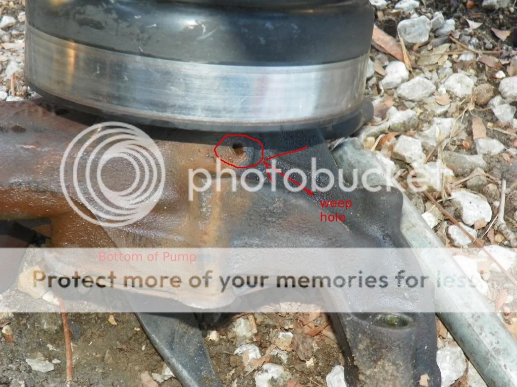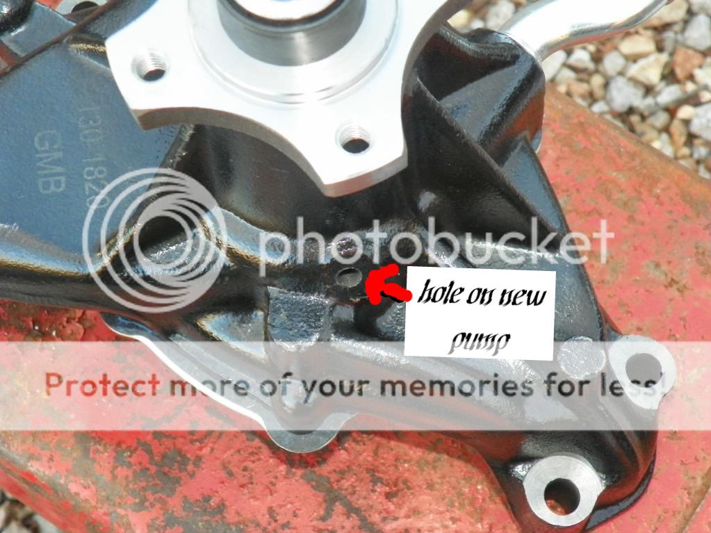 Where is this hole? Under the pump? So no leak, no play in the waterpump itself and no overheating = good pump? If there is an antifreeze leak anywhere, wouldn't it smell like it? I had a blown radiator and old radiator hoses when we bought this truck (overheated on the way home from the dealer. Steam coming from the 4" gash in the radiator tank) and we could smell antifreeze coming from somewhere.