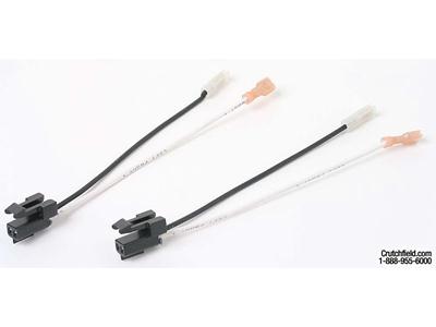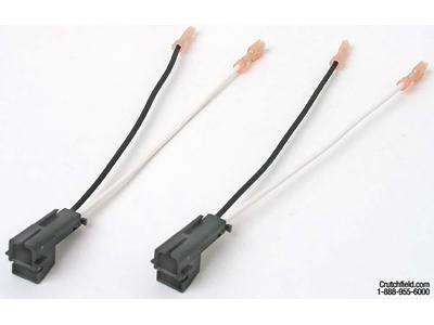 sorry for the low quality picks but the harness you would buy for the front speakers would replace this connector on your new speakers. Otherwise, you would have to reach in behind the door, clip off the factory connector and crimp on spade connectors. On mine, I had very little extra wire to work with if I would have gone that route. With the harness for the front, you connect the spade connectors to your new speakers (they are designed to only do on one way, no worries about which is positive and which is negative) and connect the two connectors together. Takes all of two minutes this way. No cussing, no worries about polarity and nice clean install.