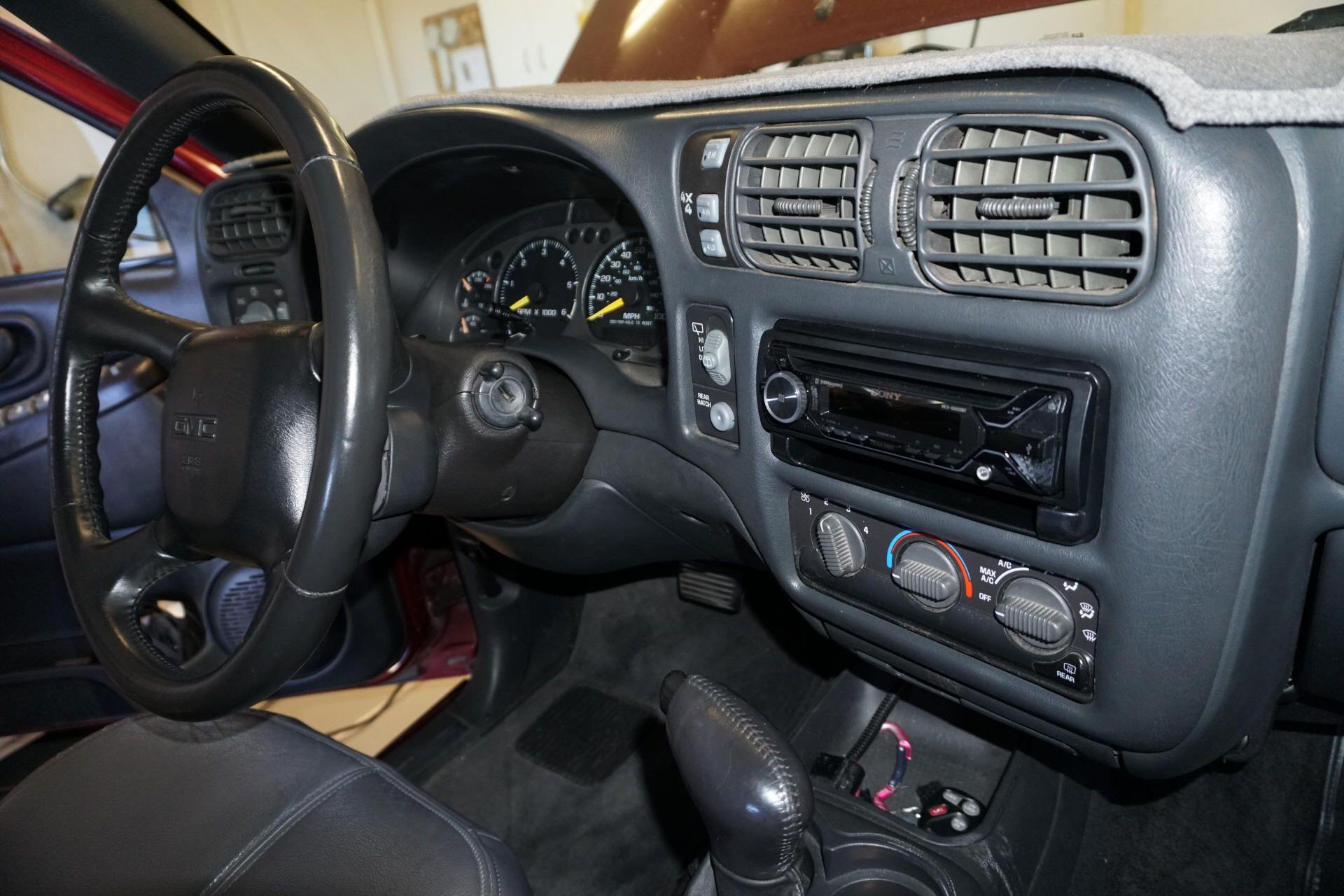 After considerable additional research, I picked up a used 2002 GMC Sierra wheel with audio controls that was in excellent shape and would accept the same air bag module. Of course, this then required a more complex clock spring assembly equipped with enough circuit traces to support the steering wheel controls, as well as a separate interface unit that could transform the GM steering wheel control signals into Sony-talk. I bought a used 2004 Trailblazer clock spring with the required additional circuit traces and a PAC Audio ControlPRO2 interface, and I installed everything during the Christmas holiday. Below are some snapshots of the project.