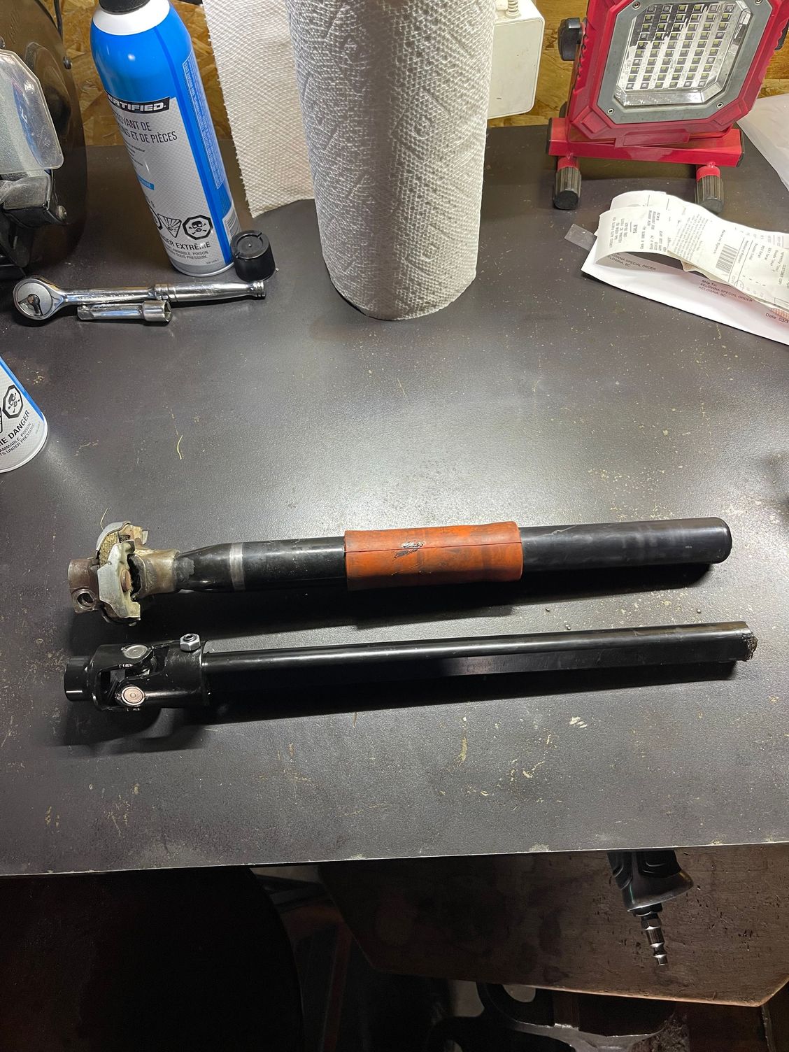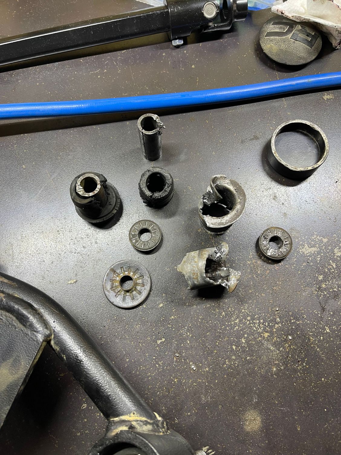 That takes me to what I'm working on now, I started with taking out the upper control arms to replace the bushings and ball joints. There was pretty much nothing left of the driver side bushings, the air hammer helped a lot for removing those. I also found out the Moog K6540 ball joints DO NOT fit the new RC arms, you need to purchase the ball joints directly from RC, so I'm currently waiting for those to come in. I've taken these few days to clean the frame in preparation to POR up to the body mount under the door, it has taken a lot of elbow grease to get all the old rubber coating off, it will definitely be worth it though. Using a pick in the hard to reach areas and paint thinner seemed to work the best so far, I plan to do the metal prep today after work then finally paint it with 2 coats, it will be another late one tonight lol. I was also able to squeeze in replacing the pitman arm yesterday too, it should be driving nice again when its all back together!