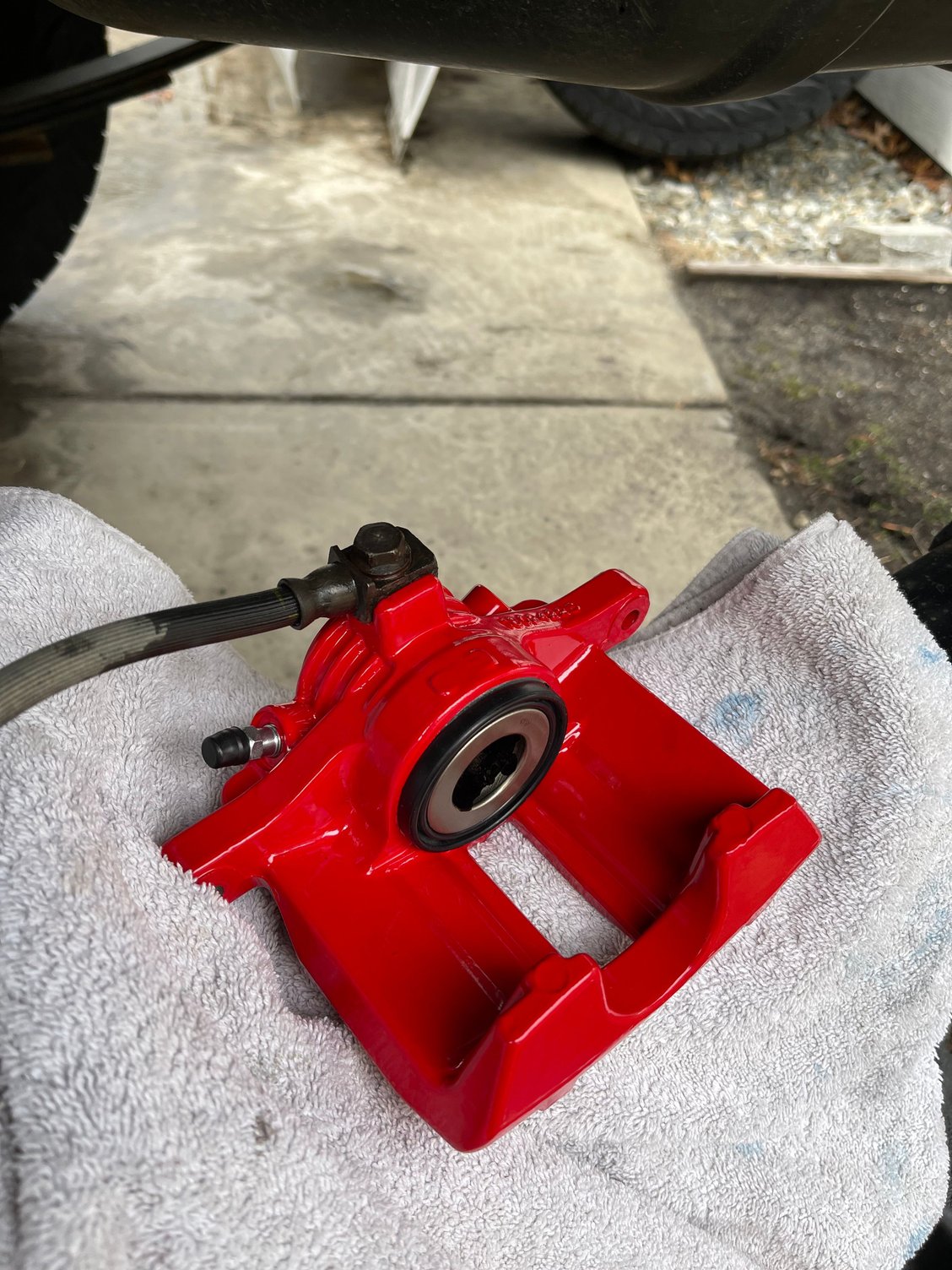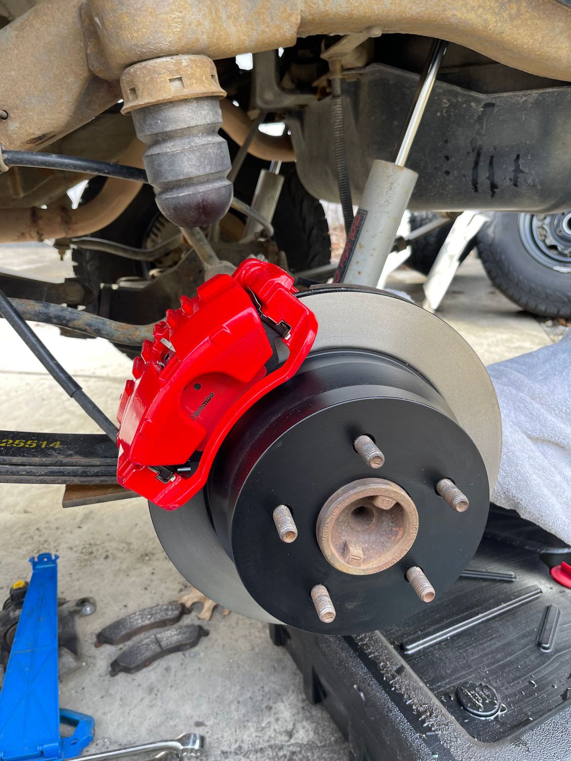 It has been a very long haul to get the blazer back on the road. After painting the frame, I put some new rear callipers in since I was having an issue with one side sticking. Well, I liked the powder coat so much I went ahead and ordered the fronts too! I also replaced the front brake hoses while I had things apart. I took some time off work to get it all back together, just to my luck, after I put it all back together and replaced all four callipers, bled the brakes and did an eye alignment so I could go for a test drive, I hopped in and the brake pedal went to the floor with absolutely no resistance. So I was off to replace the master cylinder. Finally, after replacing the master cylinder I was back on the road! I got an alignment, and it's driving great again.