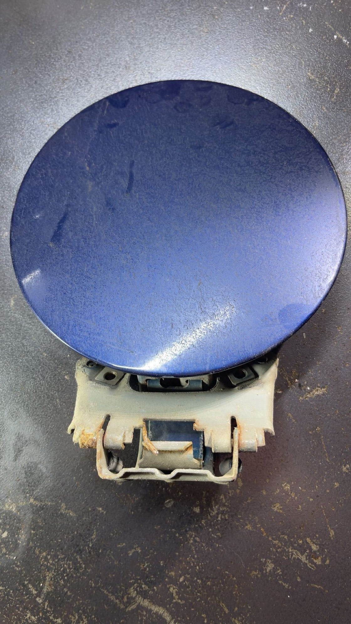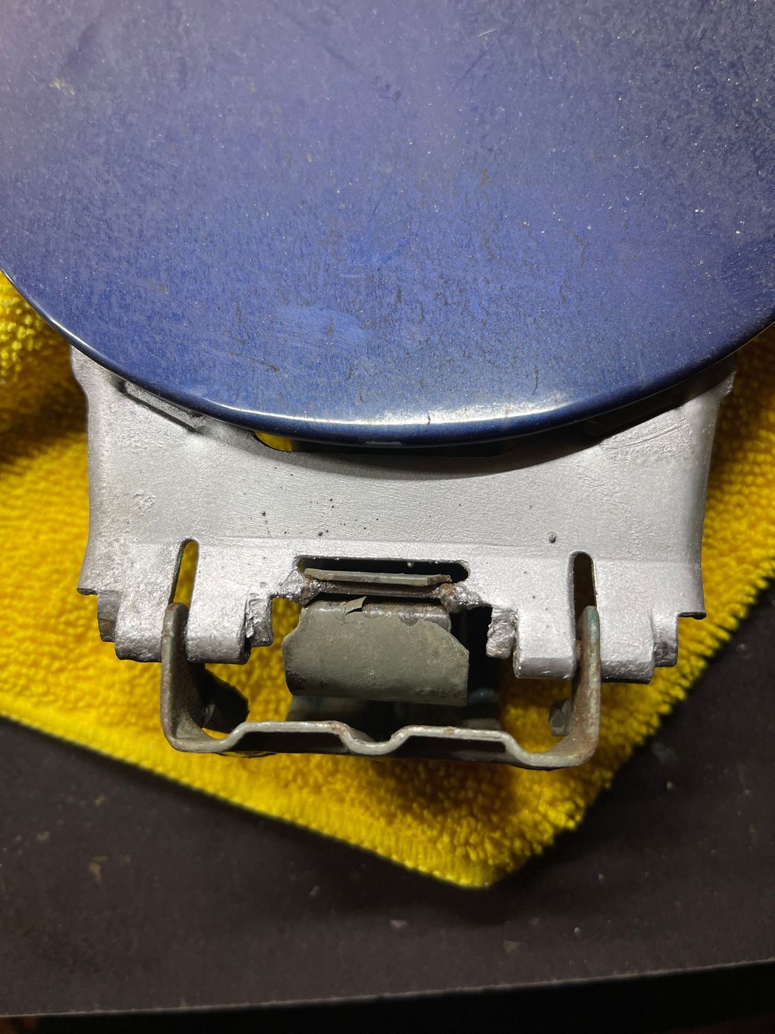 Now, one day last week I was getting gas after work and the gas door broke when I opened it. I drove home with it flapping in the wind thinking the spring was broken, so I got one of those too. After taking it apart I noticed the spring was fine but the slot that holds the spring in tension had rusted out and finally broke, it has been so cold here lately maybe that had something to do with it too. I took the whole gas door apart and cleaned up the area then welded the part that broke off, finished up with some paint and put it all back together, some pictures of the repair below.