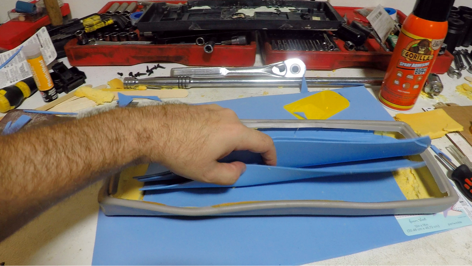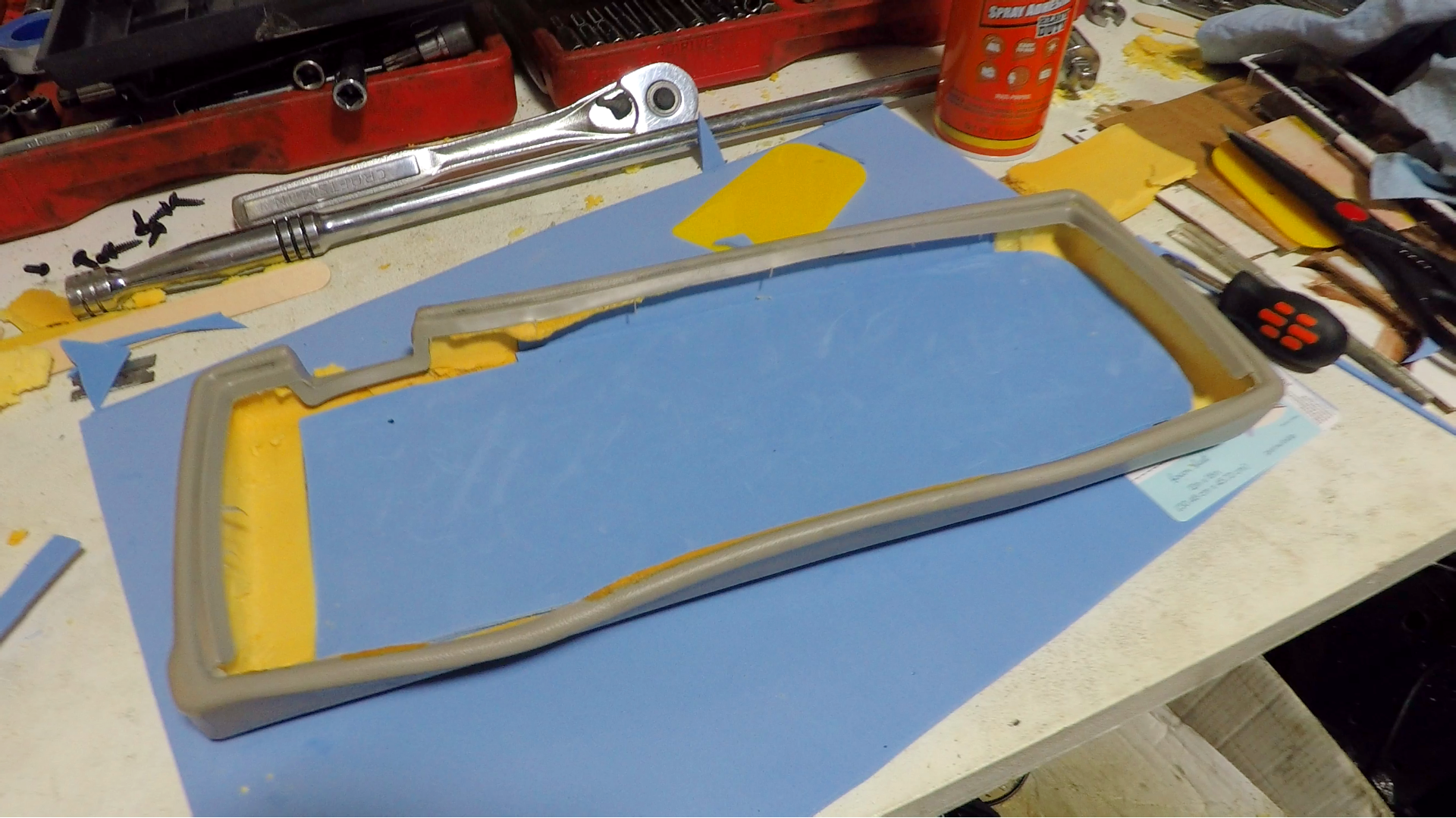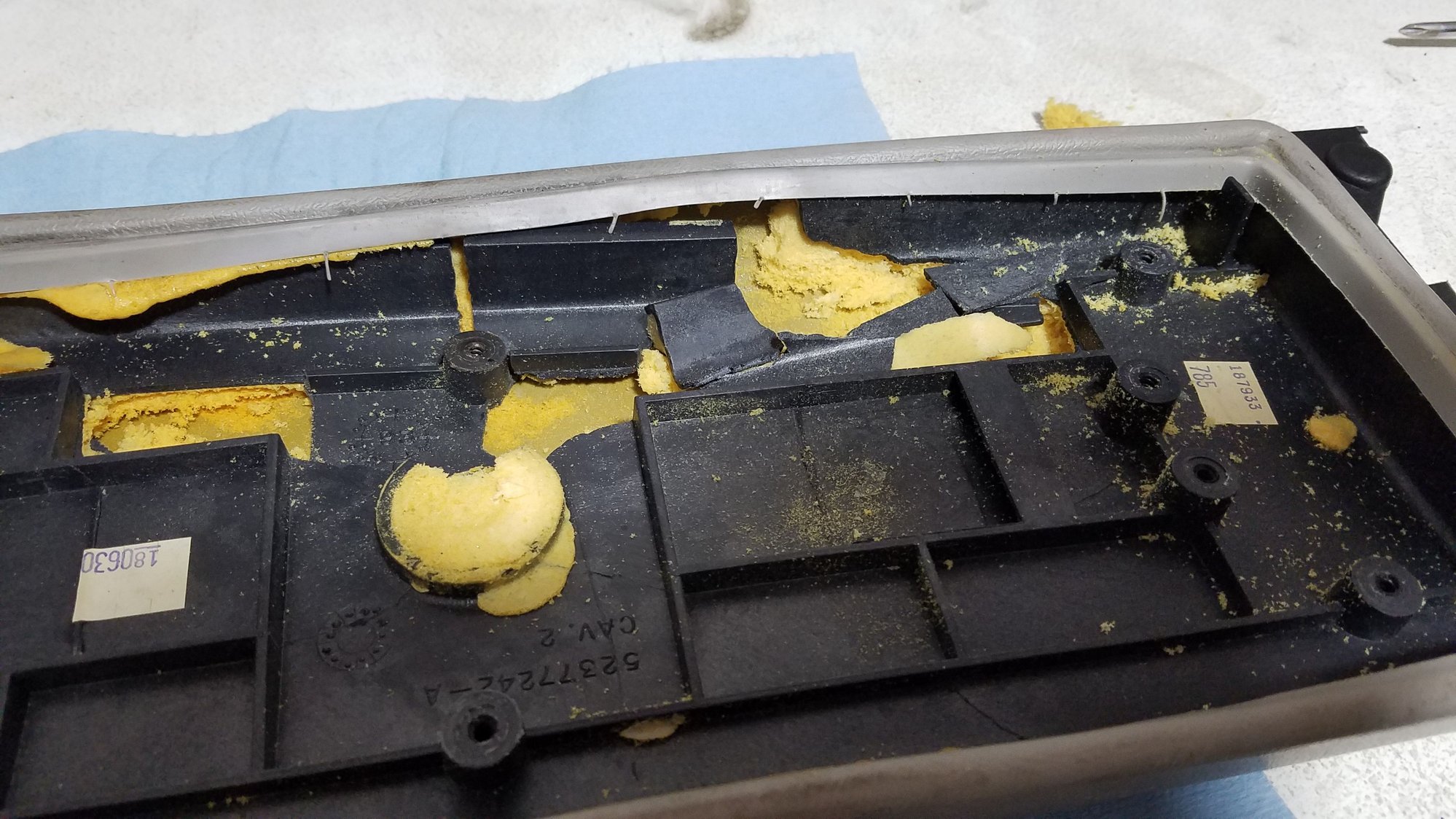 Good Tip lol. I've currently got the console lid torn apart, and almost have the base back together to where I'm happy with it. . . . it was in about 8-10 pieces when I started. Going to skim the top with bondo to make it smooth and give it a little extra support. Right now I'm looking at trying to reuse the OE rubber/vinyl top but the foam is pretty destroyed.
