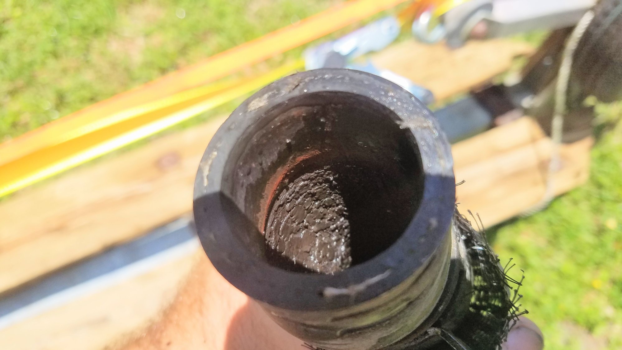 A while back I had found the hose to my overflow tank was totally plugged up with gunk, so when doing the rad I fully removed all the hoses to inspect. Good thing I did. . . They all had a bunch of black crusty build up.